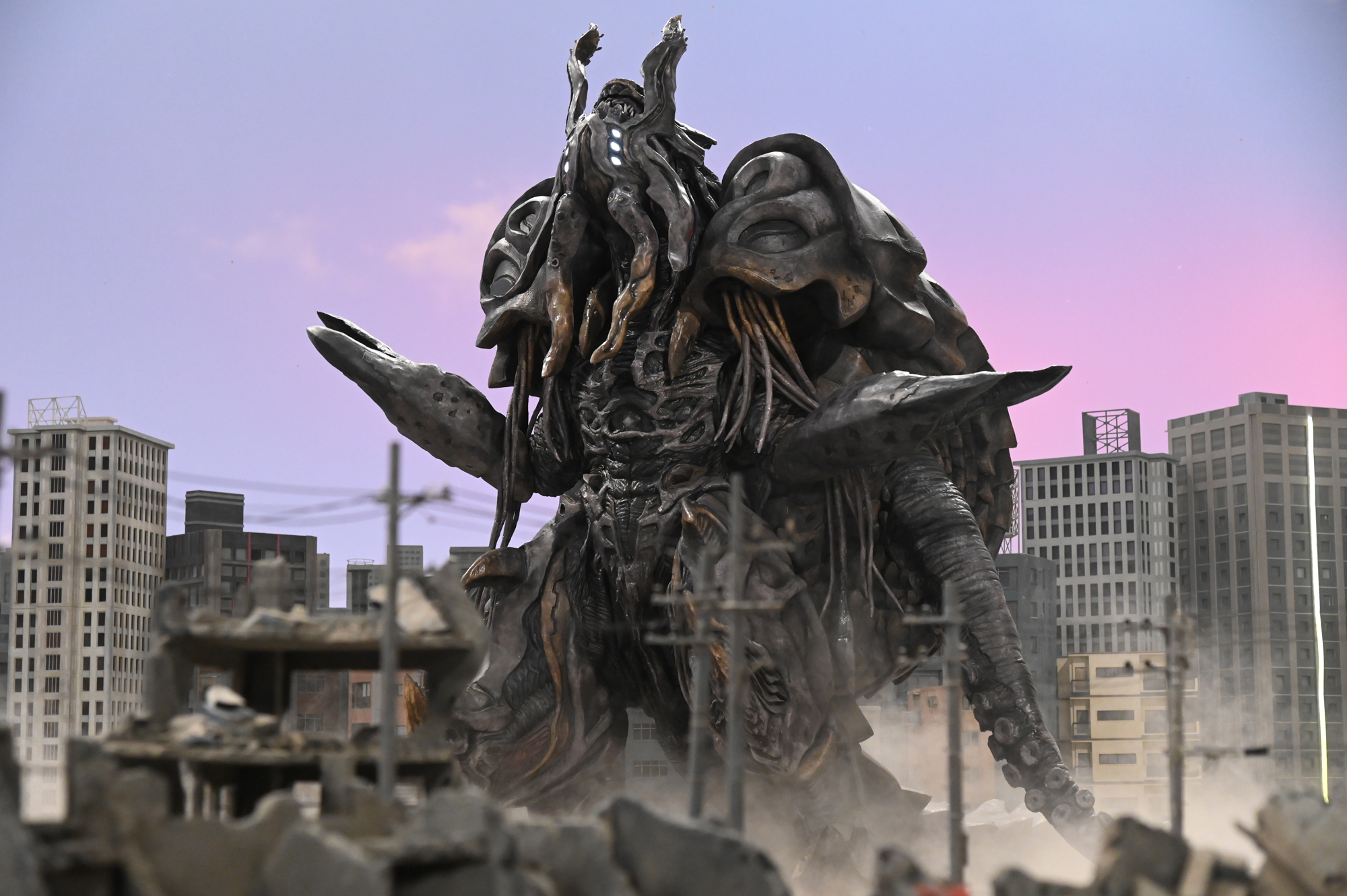 邪神 メガロゾーア(第二形態) 次へ 前へ異形の邪神、メガロゾーアが更なる進化を遂げた姿。闇を放つ強固な殻に身を包み、無数の触手攻撃(ダークメガロテンタクルズ)や頭部の角からの闇黒電撃(ダークメガロサンダー)で敵を圧倒する。詳細データ身長66m体重6万6千トン登場作品ウルトラマントリガー NEW GENERATION TIGA3000万年前に地球を恐怖に陥れた闇の巨人が復活した。開拓が進む火星で暮らす心優しい青年・マナカ ケンゴは怪獣の襲撃を受ける中、 地下に眠る巨人の石像と運命的な出会いを果たす。闇の巨人・カルミラが巨人像を狙う中、「みんなを笑顔にしたい」というケンゴの思いに応えるかのように石像が輝く。そしてケンゴが光となり石像に宿ると、光の巨人・ウルトラマントリガーが降臨。超古代の光を繋ぐ、新時代の巨人伝説が始まっ… この作品についてもっと詳しく 全話見放題TSUBURAYA IMAGINATIONSHARE