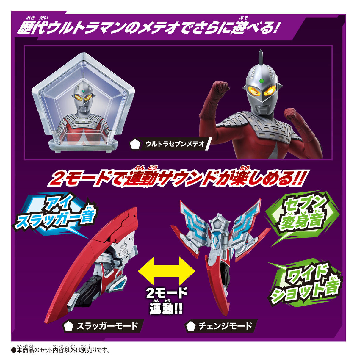 このセット1つで、ウルトラマンオメガ 3形態への変身遊びや、歴代ウルトラマンのメテオを使ったサウンド遊びが楽しめます。