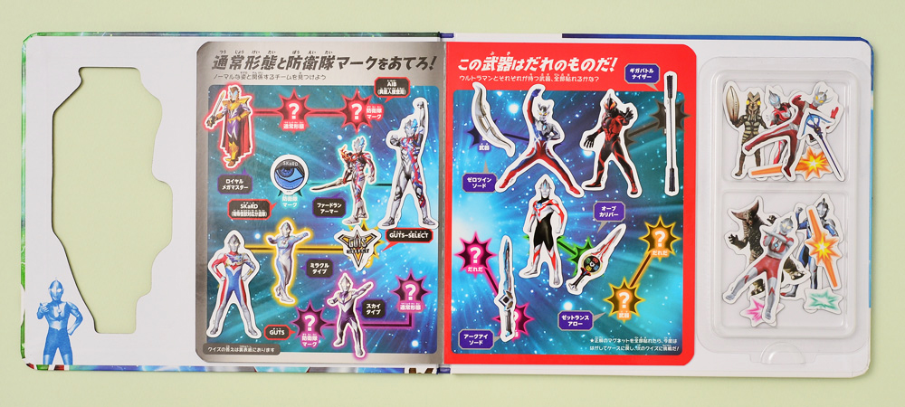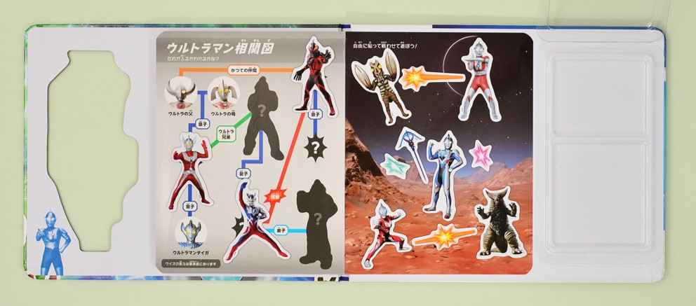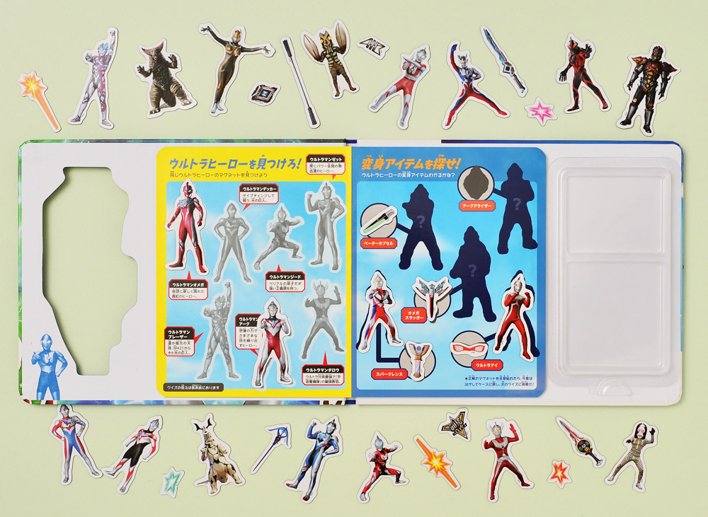 次へ 前へ発売日:2025年07月07日ウルトラマンのマグネットあそび 商品詳細ウルトラヒーローや怪獣などがマグネットになって大集合。マグネットは全部で39枚!マグネットを貼って、クイズに答えたり、戦ったり、いろいろ遊ぼう!新ヒーロー、ウルトラマンオメガも登場!!登場作品ウルトラマンオメガヒーローも怪獣も存在しない地球に、突然「ソラ」から落ちてきた宇宙人。その姿は、赤き宇宙ブーメラン「オメガスラッガー」をシンボルに湛える、“究極” の名を冠したウルトラマン。 それまでの記憶を失った宇宙人「ウルトラマンオメガ」は、「ソラト」と名付けられた地球人の姿で、初めて触れ合う生き物「地球人」を理解しようと、興味津々に人々を見つめる。 ときに出現する巨大生物、ソラトの失われた記憶から蘇る「怪獣」… この作品についてもっと詳しく 全話見放題TSUBURAYA IMAGINATIONSHARE