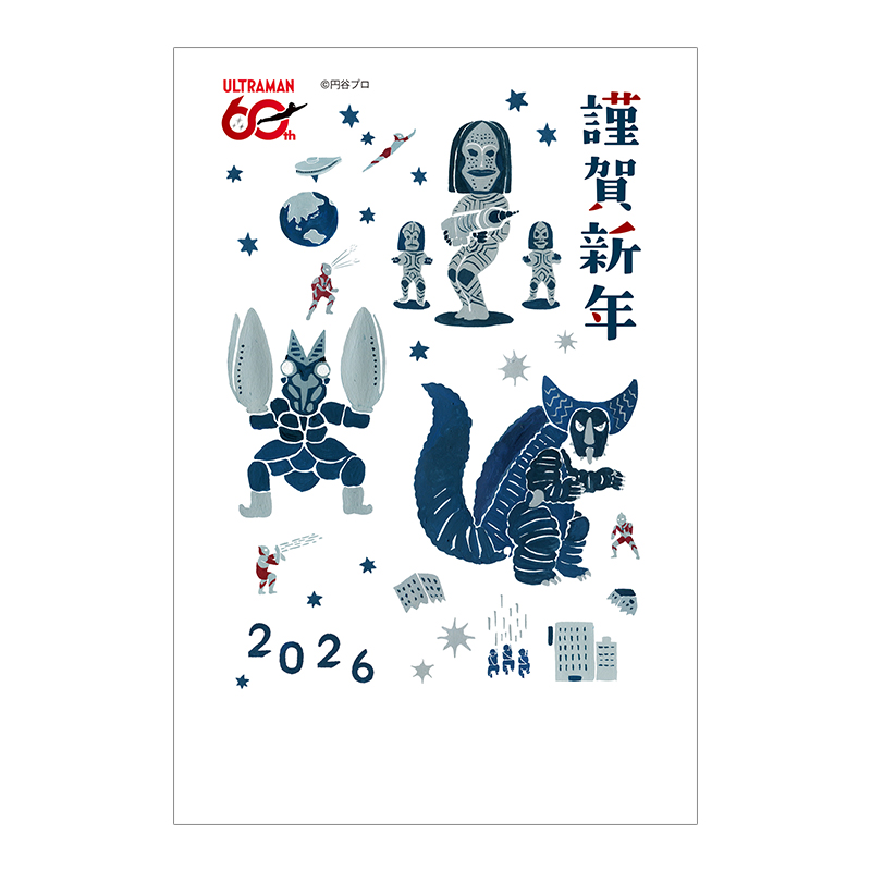 2026年は、ウルトラマンシリーズ60周年を記念して、墨絵風年賀状や