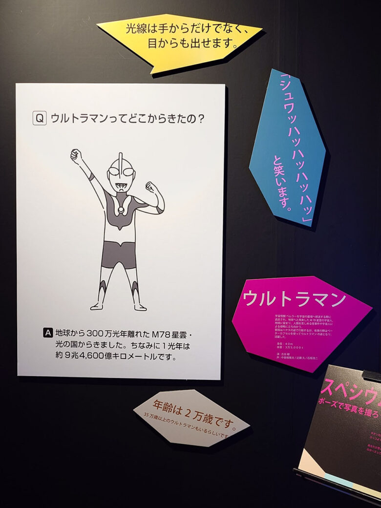 展示エリアでは『ウルトラマン』の魅力を肩肘張らずに楽しんでいただくことができるよう、ポップなアートやかわいいタッチのイラストとともに、エピソードとキャラクターを紹介します。