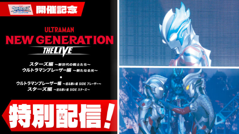 「ウルトラヒーローズEXPO 2025 サマーフェスティバル」の開催を記念して、「ウルトラヒーローズEXPO 2023 サマーフェスティバル IN 池袋・サンシャインシティ」にて上演された、前期/STAGE1「NEW GENERATION THE LIVE スターズ編 ~新世代の戦士たち~/ウルトラマンブレーザー編 ~新たなる光~」、後期/STAGE2「NEW GENERATION THE LIVE ウルトラマンブレーザー編 ~巡る願い星 SIDE ブレーザー~/スターズ編 ~巡る願い星 SIDE スターズ~」2作品のYouTube・ニコニコ動画での特別配信が決定しました。