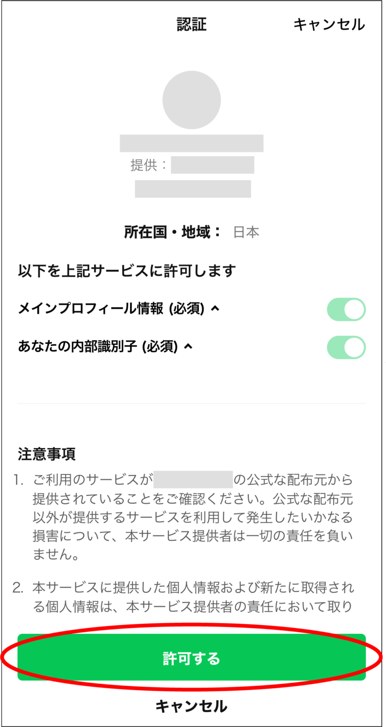 【2】 LINEのログイン画面に遷移したら許可するボタンをタップ