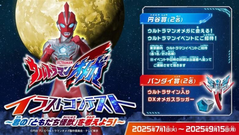 『ウルトラマンオメガ』のテーマ「バディストーリー」に連動し、ウルトラマンとみんなの街を守ってくれる「ともだち怪獣」のイラストを大募集!ワンダースクール(※)に登録のお子さまを対象に募集中です。
