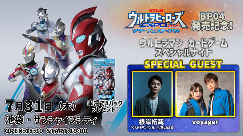 根岸拓哉さん&voyager出演!特別イベント「BP04発売記念!ウルトラマン カードゲーム スペシャルナイト」7月31日(木)開催