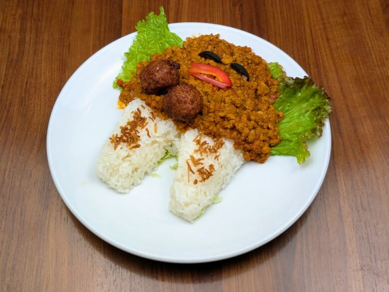 ピグモンの運命やいかに?スパイシーに味付けた挽肉カレーです。