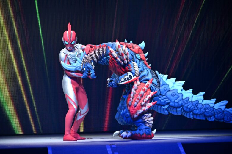 セレモニー終了後には、イベント期間中の目玉となるライブステージが行われました。ウルトラマンオメガとニュージェネレーションウルトラマンたちが迫力あるバトルシーンを展開。縦横無尽に駆け回りながら戦う怪獣たちとウルトラヒーローの雄姿に、子どもたちの大きな声援が飛び交い大盛り上がりとなりました。