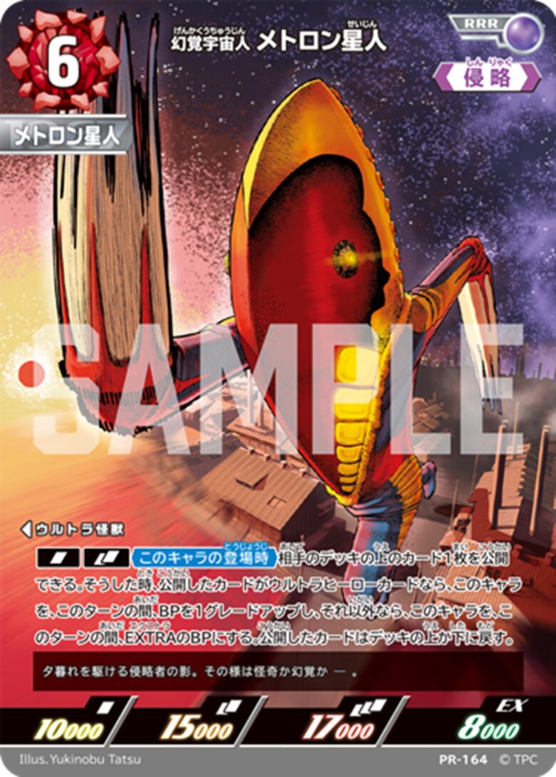 「ウルトラマン カードゲーム」ブースターパック第5弾「勇輝の黎明」のボックス購入特典「幻覚宇宙人 メトロン星人」カードのデザインを公開しました。