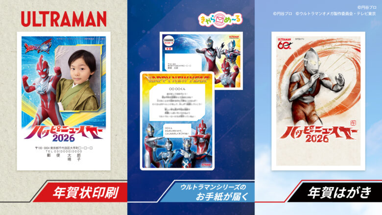 最新ヒーロー・ウルトラマンオメガも加わった「年賀状」デザインの申し込みが受付中です。
