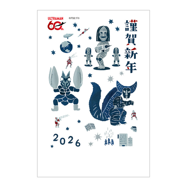 ウルトラマンシリーズ60周年を記念した墨絵風年賀状が登場しました。