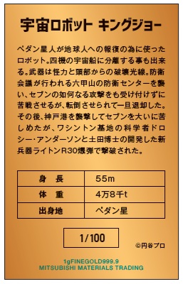 純金プレートコレクション第2弾では、放送から半世紀以上を経て、今なおファンを魅了する『ウルトラセブン』よりその世界観を象徴する、ウルトラセブン、宇宙ロボットキングジョー、幻覚宇宙人メトロン星人の全3種が登場します。