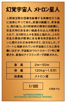 『ウルトラセブン』の人気キャラクター、ウルトラセブン、キングジョー、メトロン星人を1gの純金に印刷した豪華な「純金プレート」(全3種類)の受注販売が、本日よりニッポン放送ラジオリビングWebサイトで開始になりました。