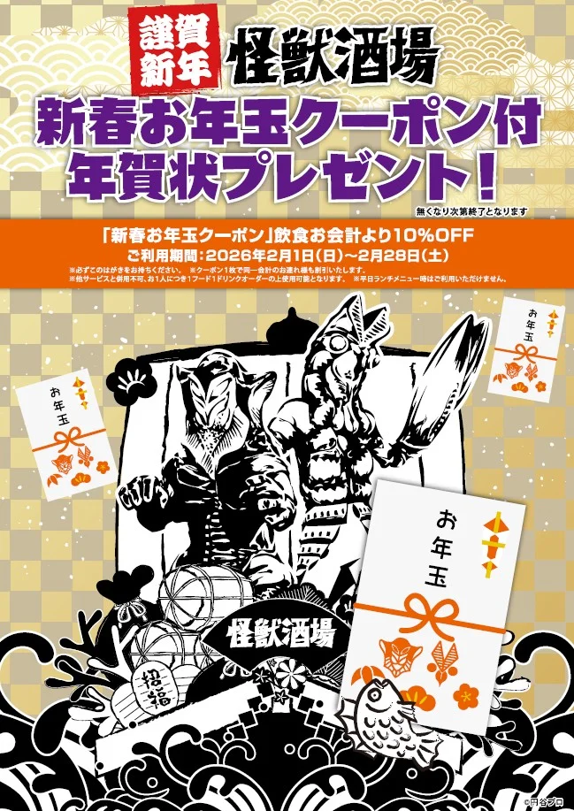 2026年の幕開けを祝って、怪獣酒場のオリジナル年賀状がプレゼントになります。