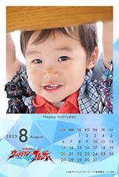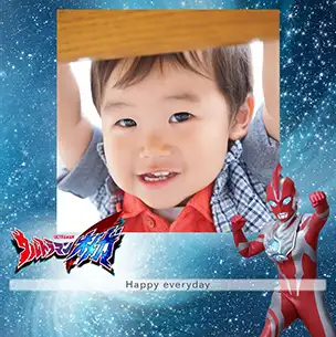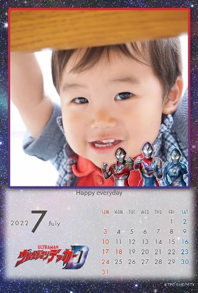 こよみフォト(はがきサイズのカレンダーのデザイン)では、それぞれの世界観をイメージした背景に、ウルトラヒーローを配置したシンプルなデザインを利用することができます。カレンダーあり・なしの2パターンから選択できます。