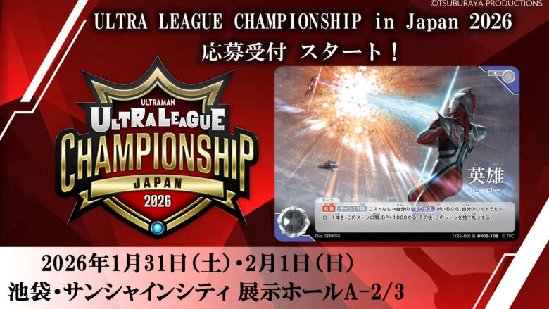 「ULTRA LEAGUE CHAMPIONSHIP in Japan 2026」は、2026年1月31日(土)・2月1日(日)の2日間に渡り、池袋・サンシャインシティで開催する円谷プロダクション主催の公式大会です。
