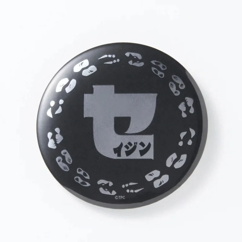 (右)メタリック缶バッジ セイジン 価格:550円(税込)