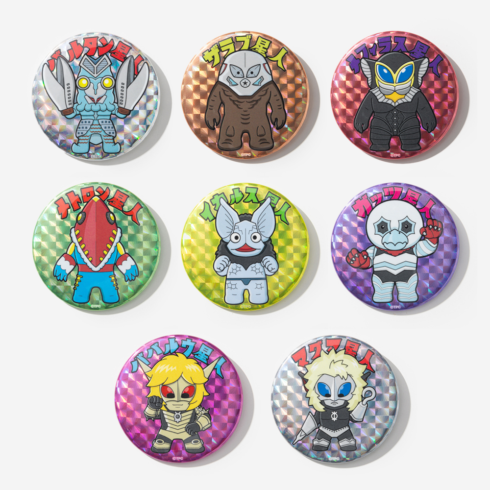 ウルトラマンシリーズに登場する人気の宇宙人のデフォルメイラストのホログラム缶バッジです。