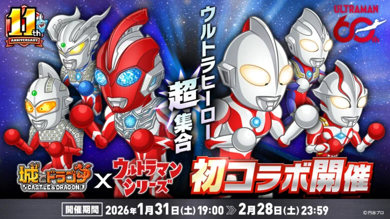 ウルトラマンシリーズ60周年とゲームアプリ「城とドラゴン」11周年を記念するコラボイベント・キャンペーンがスタートしました。