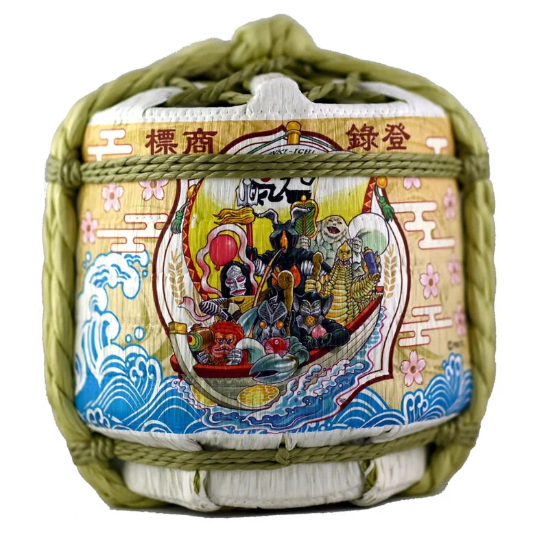 ウルトラ怪獣たちが七福神に扮した縁起モノの菰樽(こもだる)入りです。