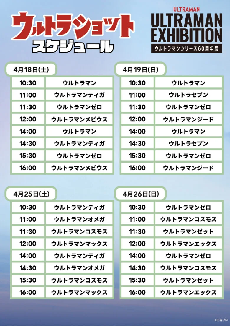 ウルトラヒーローと記念撮影ができるサービス「ウルトラショット」の前期スケジュールを公開しました。