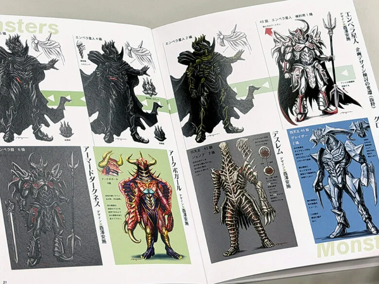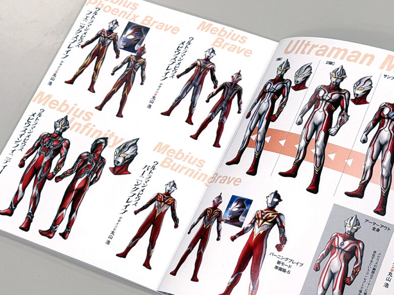 デザインブックでは、丸山浩氏(主にメビウス・ヒカリといったウルトラヒーローたちをデザイン)、酉澤安施氏(主に怪獣たちをデザイン)、PLEX(主にメカニックなどをデザイン)らが手掛けた主要なキャラクターたちのデザイン画を紹介しています。
