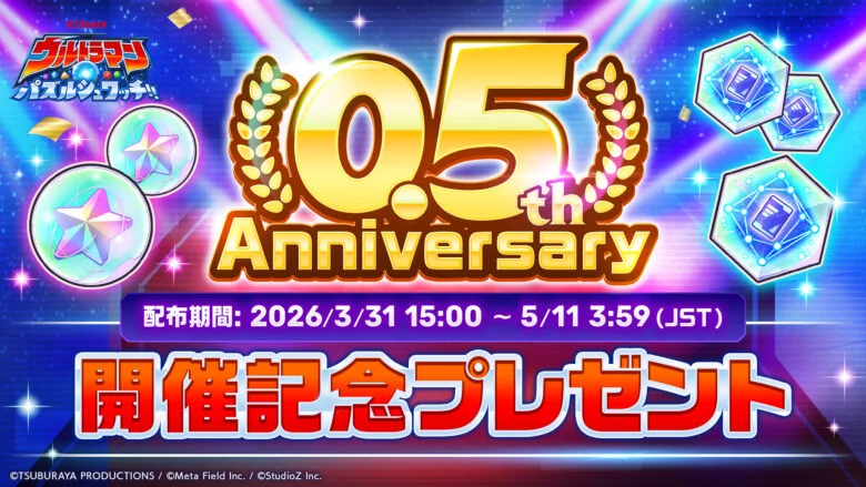 パズルゲーム『ウルトラマン パズルシュワッチ!!』は、2025年10月のサービス開始から早くも半年を迎えました。これを記念し、「0.5th Anniversary(ハーフアニバーサリー)キャンペーン」を実施します。