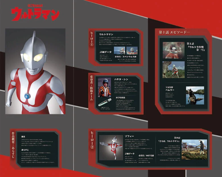 円谷プロ初のカラー作品であり、前作の世界観に「ウルトラマン」と防衛チーム「科学特捜隊」を加えてスケールアップをした第2作『ウルトラマン』。『ウルトラマン』から『ウルトラマン80』までのテレビシリーズ8作品に加え、海外展開3作品を紹介。