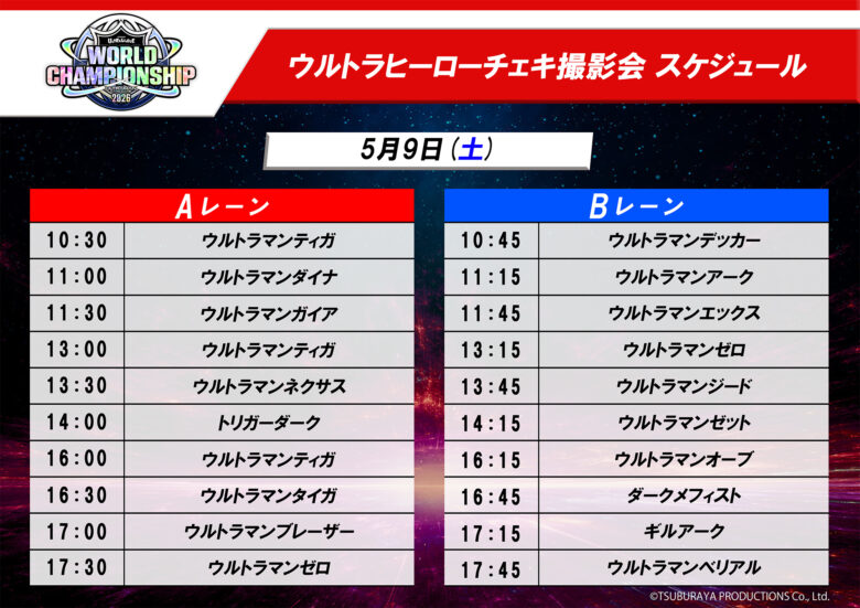 2026年5月9日(土)に東京・池袋サンシャインシティで開催する『ウルトラマン カードゲーム』公式世2026年5月9日(土)に東京・池袋サンシャインシティで開催する『ウルトラマン カードゲーム』公式世界大会「ULTRA LEAGUE WORLD CHAMPIONSHIP 2026」の本戦スケジュールを発表します。あわせて、一般入場の応募受付を開始しました。