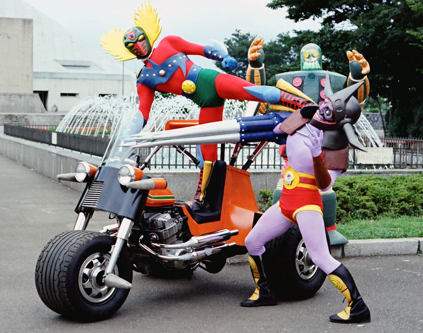 プロレスの星 アステカイザー トップ 作品あらすじ 場面写真作品あらすじ卑劣な手段でプロレス界を恐怖に陥れる悪の格闘士グループ、ブラック・ミスト。プロレスラーの兄をブラック・ミストに殺された鷹羽俊は、古代文明の力を身にまとい、正義の格闘士・アステカイザーに変身。ブラック・ミストが繰り出すサイボーグ格闘士に立ち向かっていく。クライマックスシーンでは、アニメーション演出も取り入れられ、ダイナミックなバトルが描かれた。場面写真 次へ 前へ