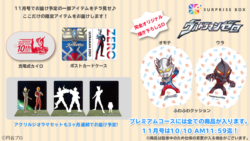 「ウルトラマンゼロ」限定グッズをお届けするサービス「サプライズボックス」が3ヶ月連続でスタート!初回お申込みは10/10(土)正午まで!